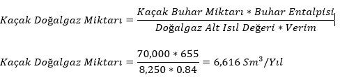 Kaçaktan geçen buhar akış miktarı 70 ton/yıl olarak bulunmaktadır.