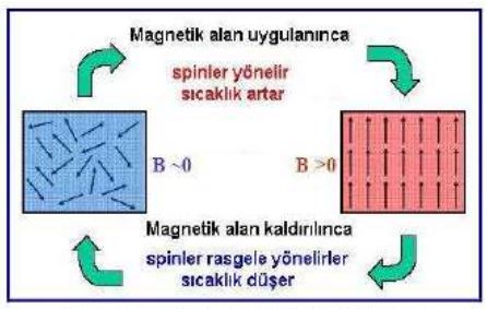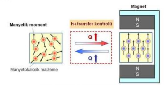 Manyetik Soğutma sistemi Manyetik malzemeye manyeto vererek soğutulur. Isınma ve soğuma işlemlerinde ısı çekilerek soğutma elde edilebilir.